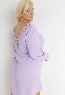 Fioletowa Sukienka Mini z Koronkową Wstawką i Długimi Rękawami Jood