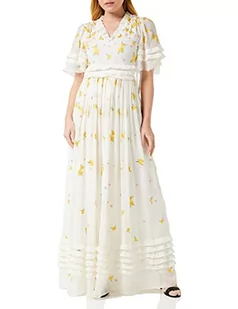 Frock and Frill Damska kwiecista haftowana sukienka na specjalne okazje, biała, 14, biały, 40