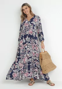 Granatowa Rozkloszowana Sukienka Oversize w Kwiaty Kylia
