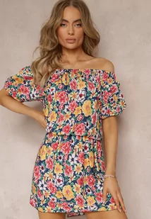 Granatowo-Żółta Sukienka Hiszpanka z Gumką w Pasie Cedrinth
