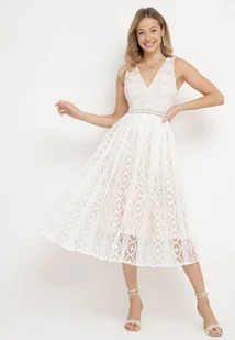 Jasnobeżowa Rozkloszowana Sukienka z Plisowanym Dołem i Ozdobnymi Haftami Asorasia