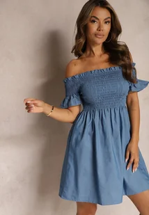 Jasnoniebieska Rozkloszowana Sukienka Typu Hiszpanka z Marszczeniem Solifea