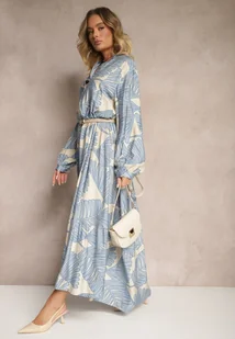 Jasnoniebieska Wiskozowa Sukienka o Rozkloszowanym Kroju w Liście Rivvesa