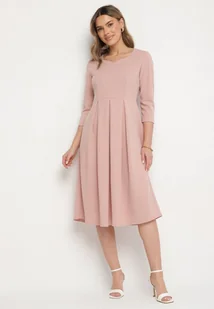 Jasnoróżowa Rozkloszowana Sukienka z Rękawem 3/4 Nomiel
