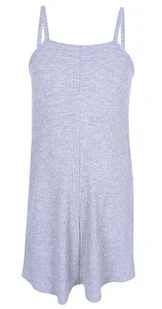 Szara, dzianinowa sukienka, w pionowe prążki, rozszerzająca się ku dołowi. Elastyczna, zwiewna i wygodna, na ramiączkach. Wykonana z miłego, miękkiego w doty...