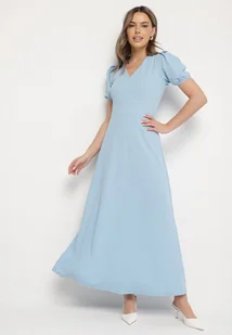 Niebieska Sukienka Rozkloszowana z Trójkątnym Dekoltem Efralinae