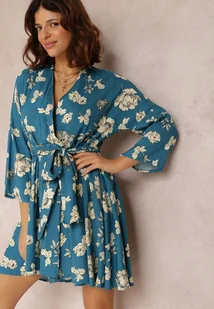 Sukienka Thaleira wzorzysta, o długości mini. Kopertowy fason z wiązanym paskiem wokół talii. Rewelacyjnie podkreśla kobiecą sylwetkę. Rękaw o długości 3/4. Głęboki dekolt w kształcie litery V.