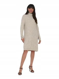 ONLY BEŻOWA DZIANINOWA SUKIENKA Z GOLFEM I DŁUGIM RĘKAWEM S 6CA