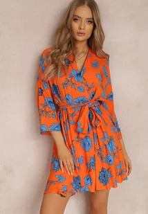 Sukienka Thaleira wzorzysta, o długości mini. Kopertowy fason z wiązanym paskiem wokół talii. Rewelacyjnie podkreśla kobiecą sylwetkę. Rękaw o długości 3/4. Głęboki dekolt w kształcie litery V.