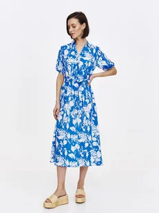 Sukienka damska dostępna w kolorze niebieskim TSKS25SUK483555X00. Modelka ma 177 cm wzrostu i prezentuje rozmiar 34.