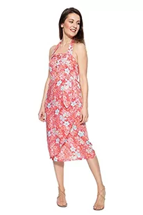 Queen Kerosin Damska letnia sukienka z tropikalnym wzorem wycięcie w kształcie litery V bez rękawów letnia sukienka normalna wzór, czerwony, XS