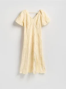 Reserved - Bawełniana sukienka z haftem - jasnożółty