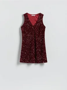 Reserved - Cekinowa sukienka mini - bordowy