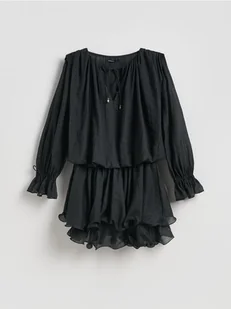 Sukienka o swobodnym kroju, wykonana z tkaniny z dodatkiem lyocellu.