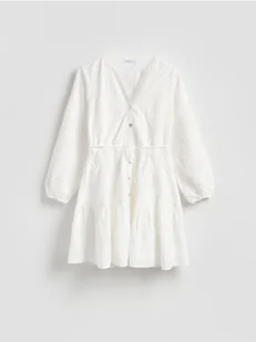 Sukienka o swobodnym kroju, wykonana z bawełnianej tkaniny.