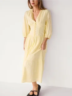 Reserved - Sukienka z haftem - jasnożółty