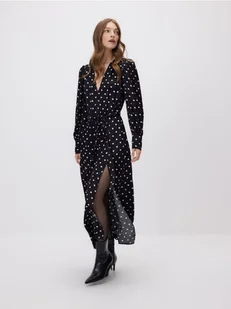 Długa sukienka o swobodnym fasonie, wykonana z wiskozowej tkaniny.
