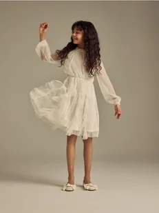 Reserved - Tiulowa sukienka - kremowy