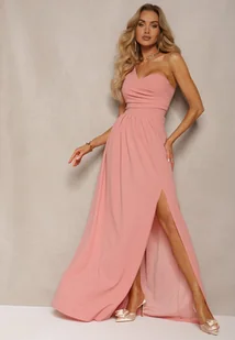 Różowa Asymetryczna Koktajlowa Sukienka o Długim Rozkloszowanym Kroju Erulia