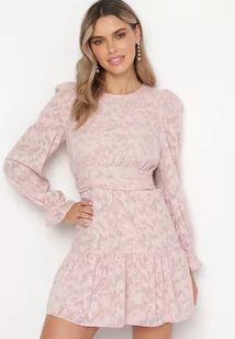 Różowa Sukienka Mini z Tkaniny Plumeti i Falbanką Coucile