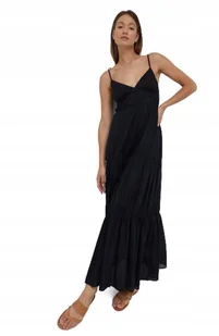 SISLEY CZARNA SUKIENKA MAXI NA RAMIĄCZKACH Z FALBANĄ 44 2DA