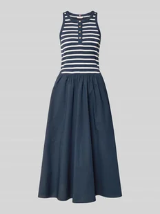 Sukienka casualowa damska od Tommy Hilfiger;efekt: jednolity kolor, wzór na całej powierzchni;fason/krój: linia a;Długość: maxi;Wzór: w paski;dekolt: okrągły dekolt;Zapięcie: