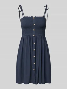 Jednorzędowa, zaznaczona listwa guzikowa;Ramiączka: wiązane, cienkie ramiączka;Wykończenie materiału: delikatna tkana faktura;Materiał: czysta wiskoza;Długość całkowita w rozmiarze S: 90 cm;Szerokość klatki piersiowej w rozmiarze S: