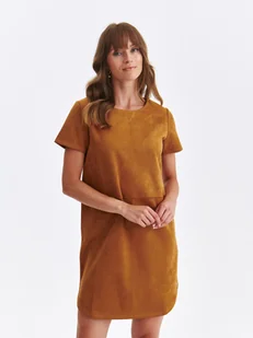 Sukienka damska Top Secret o bardzo luźnym kroju. Urzekająca komfortem oraz wygodą podczas użytkowania sukienka damska o luźnym kroju i długości do połowy uda. Posiada ona proste krótkie rękawy zakończone delikatnym przeszyciem oraz okrągły dekolt z ozdobną lamówką wokół, a uroku dodają jej oryginalne zaokrąglone wcięcia u dołu po bokach oraz zapięcie z tyłu na suwak. Została ona wykonana z przyjemnej w dotyku oraz trwałej tkaniny zamszowej, sprawdzając się świetnie w przeróżnych kobiecych stylizacjach zarówno do pracy, jak i również podczas wieczornych spotkań z przyjaciółmi. Sukienka dostępna w kolorze camel SSU4729B5.