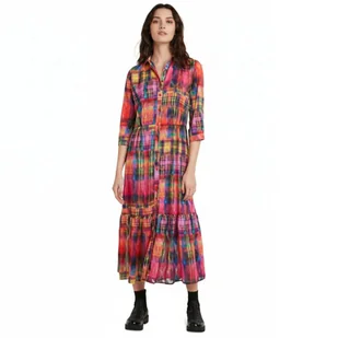Odcięcie w talii – subtelnie modeluje sylwetkę, zapewniając komfort noszenia. Desigual Vilafranca to wyjątkowa sukienka midi, która łączy koszulową klasykę z artystyczną swobodą i kolorem. WYMIARY Długość całkowita - 127 cm Długość rękawa - 45 cm Szerokość pod pachami - 47 cm Szerokość w pasie - 41 cm