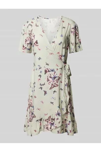 Sukienka kopertowa damska ONLY;Czysta wiskoza;Dopasowany fason;Sukienka mini;Model ELISABETH;Dekolt w serek;Dół obszyty falbaną;Długość tyłu w rozmiarze S: 73 cm;Szerokość klatki piersiowej w rozmiarze S: 44 cm;Długość rękawa w rozmiarze S: 23 cm