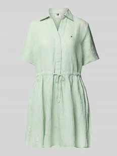 Sukienka koszulowa damska Tommy Hilfiger Sportswear;Krój: rozkloszowany;Długość: do kolan;Dekolt: Dekolt w serek;Detale: Marszczenie w talii, tasiemka wiązana;Rękaw: