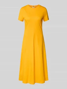 Sukienka midi damska od Tommy Hilfiger;efekt: jednolity kolor;Krój: krój regular fit;Długość: midi;dekolt: okrągły dekolt;Aplikacja: wyhaftowane logo;rękaw: krótki rękaw;Wykończenie materiału: Interlock;Materiał: czysta bawełna