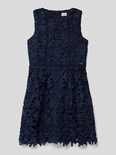 Sukienka dziecięca Guess;Mieszanka bawełny;Zaznaczona talia;Jednolity kolor;Krój bez rękawów;Zamek błyskawiczny na plecach;Jednolity kolor;Haft angielski;Długość tyłu w rozmiarze 140: 75 cm