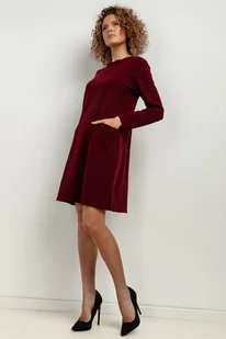 Sukienka z kieszeniami i rozcięciami po bokach, T412, bordo