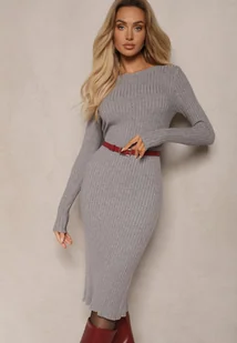 Szara Sweterkowa Sukienka Prążkowana o Dopasowanym Kroju z Kaszmirem i Wełną Dailithia
