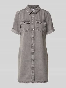 Sukienka denimowa damska od Tommy Jeans;Wygląd: denim;krój: taliowany;Długość: długość mini;Aplikacja: wyhaftowane logo;Zapięcie: listwa guzikowa;rękaw: krótki rękaw;Kieszenie: kieszenie na piersi;Materiał: czysta bawełna