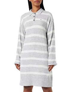 Tommy Hilfiger Damska miękka wełniana sukienka polo, Breton Stp szary wrzosowy/ecru, L