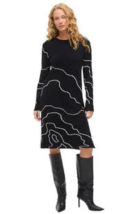 VILA CZARNA SUKIENKA MIDI Z DŁUGIM RĘKAWEM I WZOREM DZIANINOWA M 6BA