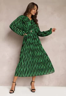 Zielona Plisowana Sukienka Maxi z Kopertową Górą i Gumką w Pasie Holia