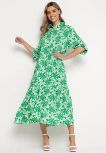 Zielona Sukienka Maxi w Kwiatowy Wzór z Koszulową Górą Lithaia