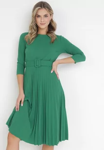 Zielona Sukienka Plisowana z Paskiem Gonge