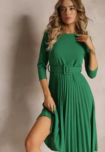 Zielona Sukienka Plisowana z Paskiem Gonge