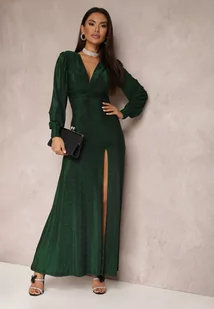 Zielona Sukienka Wieczorowa z Głębokim Dekoltem Phaly