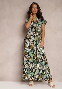 Zielono-Czarna Sukienka z Wiskozy Maxi w Kwiaty Mahiza