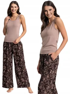 Damska Piżama Na Ramkach Kwiatowe Spodnie Brązowa Bawełna Wiskoza MORAJ L ➡️Górę zestawu stanowi koszulka na szerokich ramiączkach i okrągłym dekoltem, uszyty z miękkiej, oddychającej bawełny z domieszką elastanu, przyjaznego dla skóry. Długie spodnie o prostym kroju, ozdobione kwiatowym nadrukiem inspirowanym naturą i wyposażone w praktyczne kieszenie boczne, dodają całości lekkości i funkcjonalności. ➡️ Miękka, oddychająca tkanina – delikatna i przyjazna dla skóry. ➡️Elastyczna gumka w pasie z dodatkowym troczkiem gwarantuje idealne dopasowanie i swobodę ruchów, a lekka, przewiewna tkanina sprawia, że piżama świetnie nadaje się zarówno do snu, jak i codziennego domowego wypoczynku. To praktyczny i stylowy komplet, który z łatwością połączy wygodę z subtelnym, kobiecym charakterem.