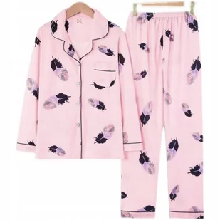 Przedmiotem oferty jest dwuczęściowa piżama damska. Cechy charakterystyczne: - damska piżama dwuczęściowa; rozpinana koszula i spodnie; luźna, wygodna, nie k...