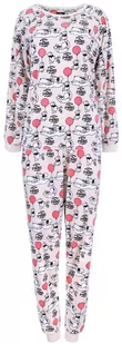 Beżowa, dwuczęściowa piżama damska, składająca się z bluzki i długich spodni. Bluzka z długim rękawem i okrągłym dekoltem, rękawy zakończone ściągaczami. Spo...