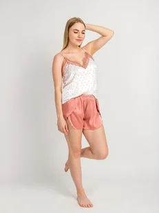 Dwuczęściowa piżama satynowa M ecru Piżama Damska Dwuczęściowa Koszulka Na Ramiączkach Szorty Satynowa Ecru M Odkryj Komfort i Styl z Nasza Piżamą Satynową?✨ Przedstawiamy naszą wyjątkową, dwuczęściową piżamę satynową – idealny wybór dla każdej kobiety, która pragnie czuć się pięknie i komfortowo podczas snu. Koszulka na wąskich, regulowanych ramiączkach z dekoltem w serek, subtelnie wykończona koronką, dodaje zmysłowości i klasy. Szorty z elastyczną talią nie tylko świetnie leżą, ale również zapewniają pełną swobodę ruchów. Asymetryczny krój nogawek z delikatnie zaokrąglonym brzegiem pięknie układa się na udach, wprowadzając nutę elegancji do Twojej garderoby nocnej. Materiał piżamy gwarantuje przyjemne uczucie chłodu, co sprawia, że jest to idealny wybór na letnie noce.