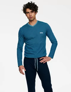 PIŻAMA MĘSKA HENDERSON Rozmiar: XXL Dwuczęściowa piżama męska HENDERSON Tier to zestaw złożony z longsleeva i długich spodni. Prosta, podkreślająca sylwetkę ...