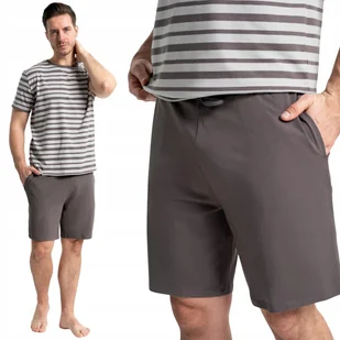 Piżama Męska Bawełniana Krótki Rękaw + Spodenki Moraj👕 Wygodna i stylowa piżama męska, idealna do snu i domowego relaksu. Wykonana z miękkiej bawełny z dodatkiem elastanu, zapewnia komfort noszenia, przewiewność oraz swobodę ruchów przez całą noc. Materiał jest przyjemny w dotyku i elastyczny, dzięki czemu dobrze dopasowuje się do sylwetki, nie krępując ruchów. Górę zestawu stanowi klasyczna koszulka z krótkim rękawem i okrągłym dekoltem, ozdobiona modnym wzorem poziomych pasków. Dół to jednolite krótkie spodenki z elastycznym pasem oraz troczkiem, który umożliwia idealne dopasowanie w talii.